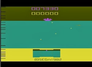 I am not sure why I am so dead set on showing off the worst of a developer's early titles, but if you want to see a boring game by a great developer than Sub Scan is the one. It is a very simple shooter where you are a ship at the top of the water dropping depth charges onto submarines. After you do this for a while you stop. The charges fall very slowly and the only challenge is timing your shots. The original arcade version had submarines shooting back at you, but the more common Atari 2600 version just has them quietly floating by. Of course, Sega had some great old arcade games, and at this point they were only a couple years away from more advanced games like Space Harrier and Hang-On so this one was more of an early misfire than an all out disaster. Luckily nothing bad would ever happen to Sega again.